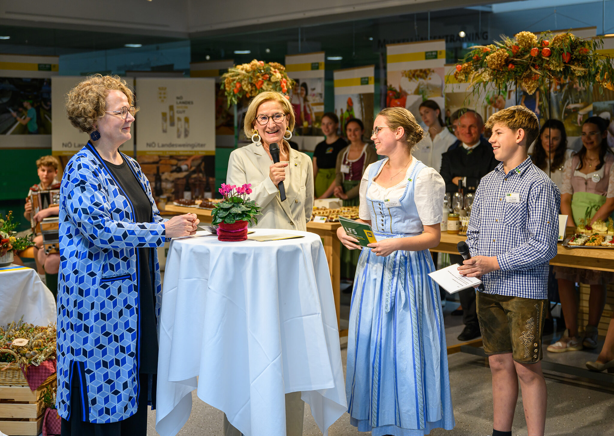 Im Rahmen des Erntedankfestes eröffneten Landeshauptfrau Johanna Mikl-Leitner und Bildungs-Landesrätin Christiane Teschl-Hofmeister den neuen Landhauskeller der Landwirtschaftlichen Fachschulen Niederösterreich. Im Verkaufslokal, welches sich im Erdgeschoss des Tores zum Landhaus, direkt neben den Räumlichkeiten der NÖ Bildungsdirektion befindet, werden das vielfach prämierte Weinsortiment der Landesweingüter und die selbst erzeugten Spezialitäten der Fachschulen angeboten. Geöffnet hat der neue Landhauskeller dienstags und donnerstags, jeweils von 9 bis 12 und 13 bis 16 Uhr.
